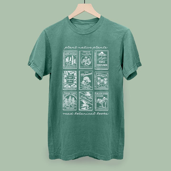 You might have spotted a T-shirt in that picture, and yes—we even designed our own native plant merch to sell at the event!
